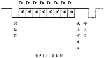 花生油流量計等節(jié)點設備和站內(nèi)PC機間的通信采用異步串行通訊控制規(guī)程,并采用地址位喚醒握手協(xié)議。因此在協(xié)議中規(guī)定了傳地址和傳數(shù)據(jù)兩種不同的幀格式,如圖.64所示。地址幀和數(shù)據(jù)幀由11位構(gòu)成,幀格式為l位起始位,l位停止位,8位數(shù)據(jù)位,1位*9位。我們將*9位設定為“地址/數(shù)據(jù)指示位”,用來區(qū)分所發(fā)送/接受的幀信息是地址幀還是數(shù)據(jù)幀。*9位為1,表示PC機發(fā)送/接受的是“地址幀”*9位為O,表示主機發(fā)送/接受的是“數(shù)據(jù)幀”。命令幀與校驗和的發(fā)送格式與數(shù)據(jù)幀相同,因此可由數(shù)據(jù)幀演化得到。