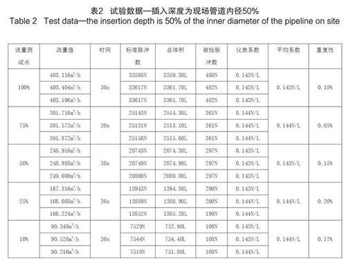 氣體渦輪流量計(jì)插入深度為現(xiàn)場(chǎng)管道內(nèi)徑的50%時(shí),試驗(yàn)數(shù)據(jù)如下(以 DN200 為例):