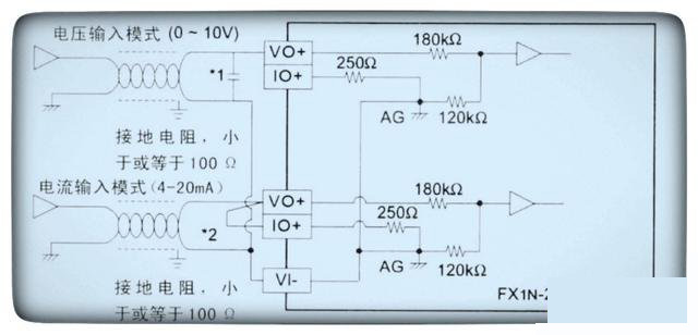 上圖是三菱PLC的一塊模擬量輸入模塊,只有兩種模擬量信號輸入,一路是電壓信號輸入、一路是電流信號輸入模,而且此模塊不能同時(shí)用于兩種信號工作。由題目可知現(xiàn)場超聲波液位計(jì)輸出的是電流信號,因此將模擬量輸入模塊選擇電流信號輸入模式。由于使用的是電流信號輸入模式,要將圖中所示的VO+和IO+進(jìn)行短接。而VI-是接電壓信號或電流信號的公共端子。